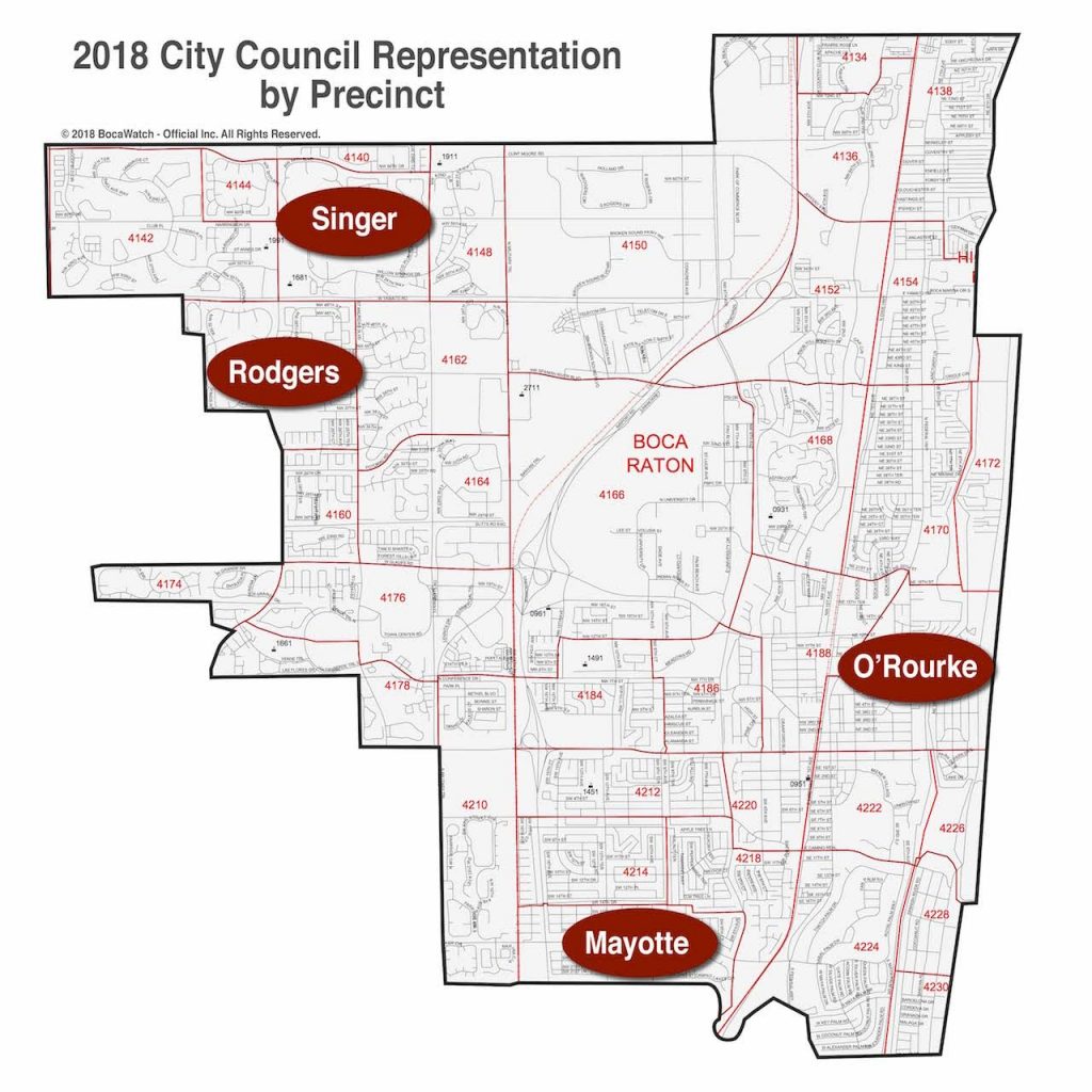There are good points to the districting concept. But I have concerns that it would not be practical for Boca. As you see on the map the current council members are not evenly distributed. After creating the districts, what happens if there is no one wanting to run in that district? What if someone wants to run, but a strong candidate has already announced in their district? Could that person then move (rental or purchase) to another district? It would be great to have NO districts but to have candidates that are truly interested in our city, that listen to the citizens and are not beholden to developers.