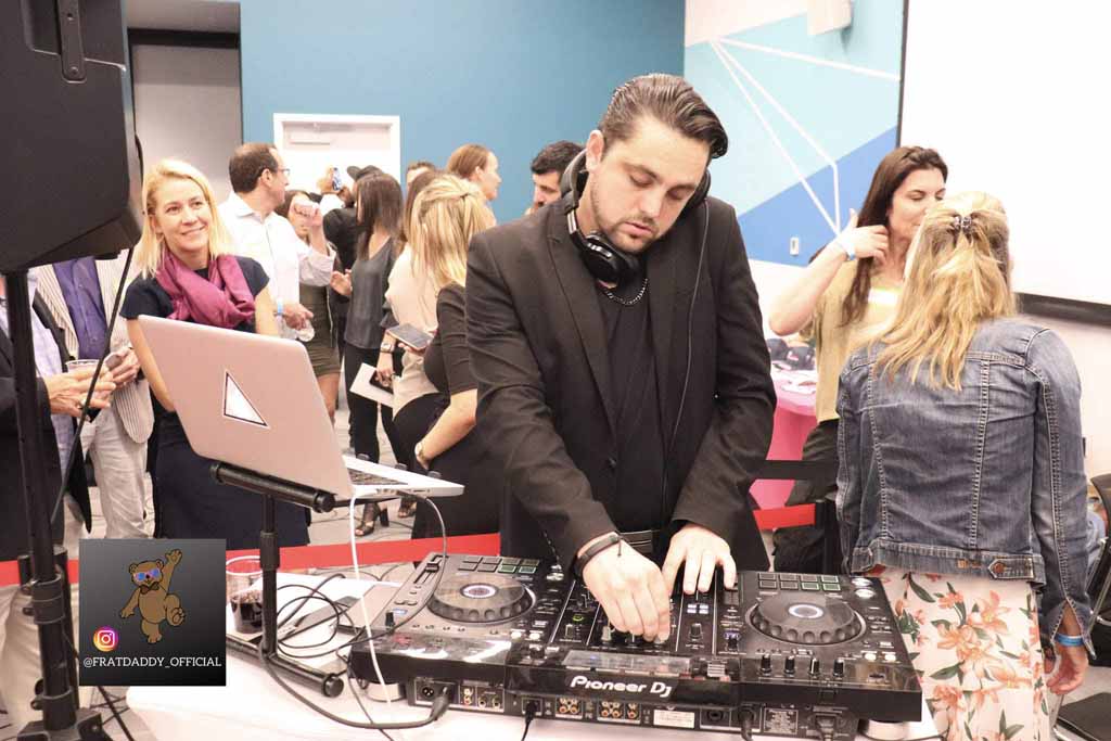 A faded red leather briefcase was held in the hands of the upright man. Together they glided along, the body and the case equally detached from the legs. A woman was half laughing half hiccupping. Even the most serious businessman found himself in a low rumble of laughter and feeling the vibe of the music from DJ/Producer Vinny Ventiera.