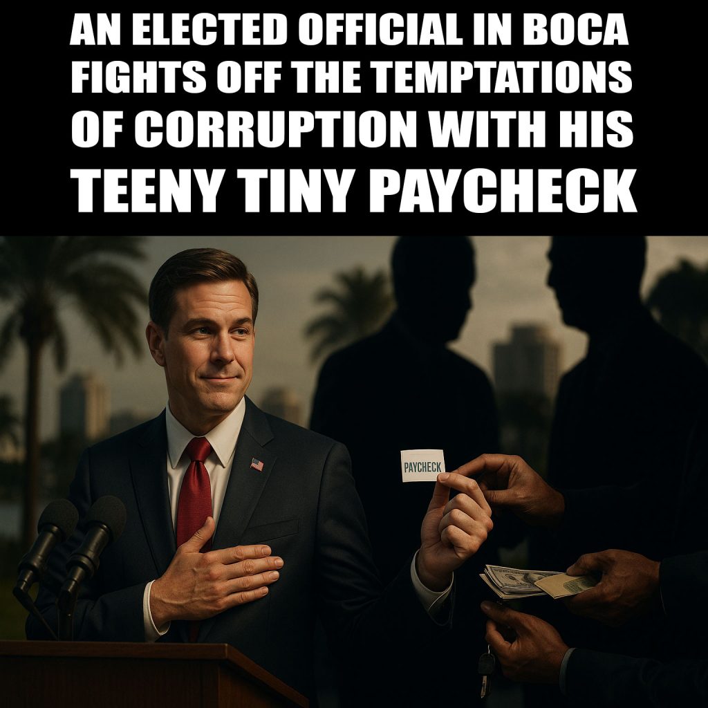 When Boca Raton’s elected officials earn as little as around $28 k for council members and $38 k for the mayor, it’s a recipe for distraction and inefficiency, especially given the immense economic and administrative responsibilities the roles carry. It doesn’t take much to understand why elected officials should be paid more, why we Boca residents NEED them to be paid more.